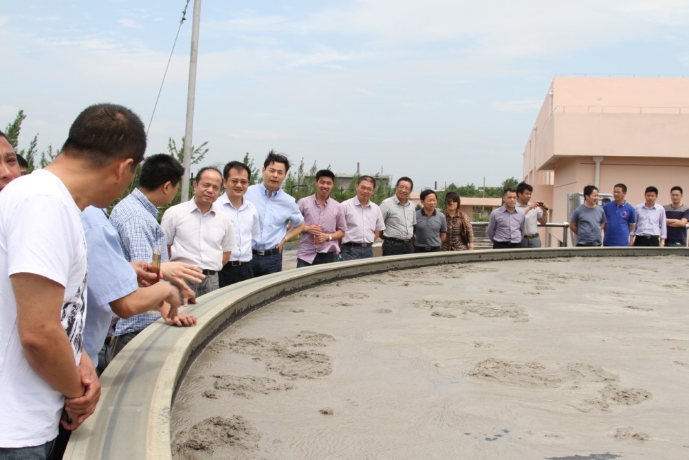 5月27日,福全鎮(zhèn)黨委書記王勤率企業(yè)家代表一行40余人到紹興水處理公司調(diào)研氣浮項(xiàng)目。調(diào)研組實(shí)地參觀了污水處理一期穩(wěn)流池和氣浮工程現(xiàn)場(chǎng),仔細(xì)聽取了技術(shù)人員對(duì)工藝技術(shù)的講解,并對(duì)經(jīng)氣浮工藝處理前、后水樣進(jìn)行觀測(cè)。隨后,調(diào)研組一行在四樓會(huì)議室進(jìn)行座談,進(jìn)一步了解有關(guān)情況。會(huì)上,印染企業(yè)老總紛紛表示,通過這次考察和交流,了解了污水處理的新工藝、新技術(shù),對(duì)政府提出的納管新要求充滿了信心。