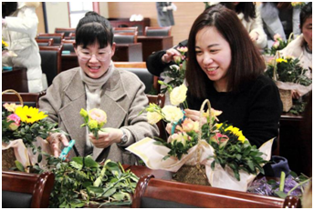 女人遇見花,注定是場(chǎng)美麗的邂逅。3月8日上午,排水公司舉行了“慶三八——提升女性修養(yǎng)”為主題的花藝培訓(xùn)活動(dòng)。活動(dòng)邀請(qǐng)專業(yè)花藝?yán)蠋熃o女職工們講解花藝知識(shí),介紹鮮花保鮮小竅門,傳授插花藝術(shù)和技巧,集團(tuán)婦聯(lián)主席童佳萍特邀出席。活動(dòng)現(xiàn)場(chǎng),春意盎然,花香四溢,女職工們躍躍欲試,小試牛刀。康乃馨,向日葵,洋桔梗……在女神們的巧手里煥發(fā)出新的生機(jī)。鮮花和女神更配哦。